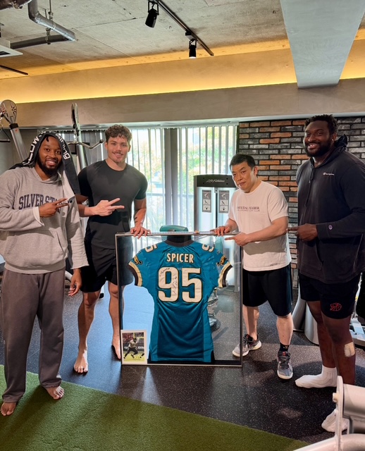 神戸での角田さんとのNSPAのセミナーよく見るとTシャツと同じポーズ笑 写真上と 今季のアメリカンフットボール Xリーグ シルバースターの外国人選手たち 左からDevin、 Nick 、Donovan 写真下